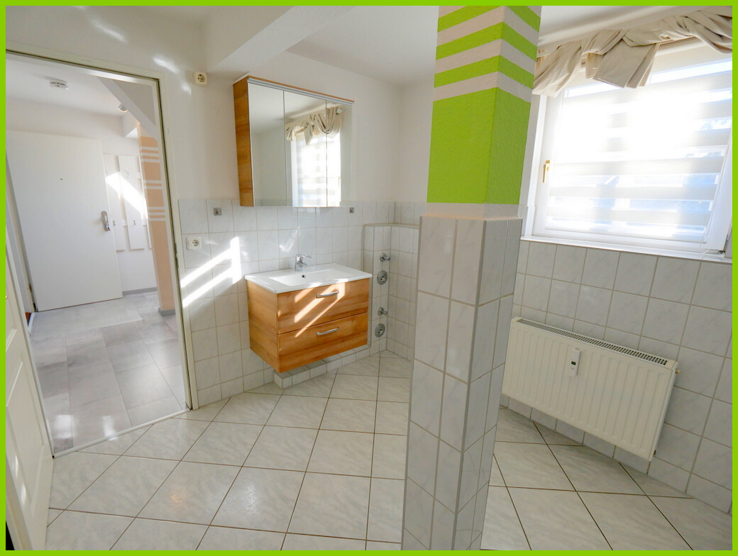 Das große Badezimmer ist modern gestaltet und bietet sowohl eine Badewanne als auch eine Dusche. Das Schlafzimmer ist geräumig und verfügt über einen großen und tiefen Einbauschrank, der ausreichend Stauraum bietet.