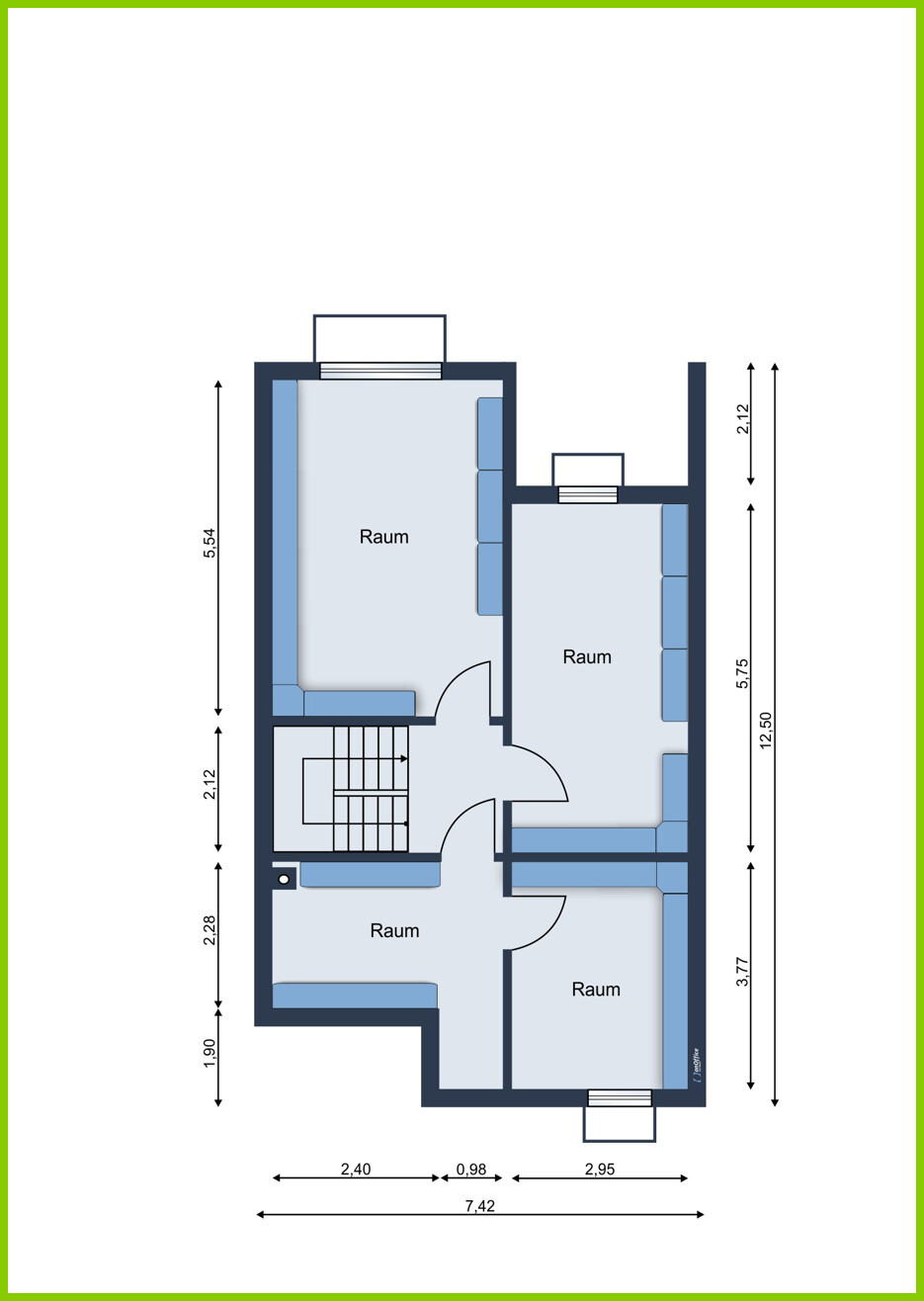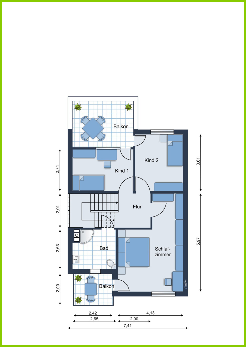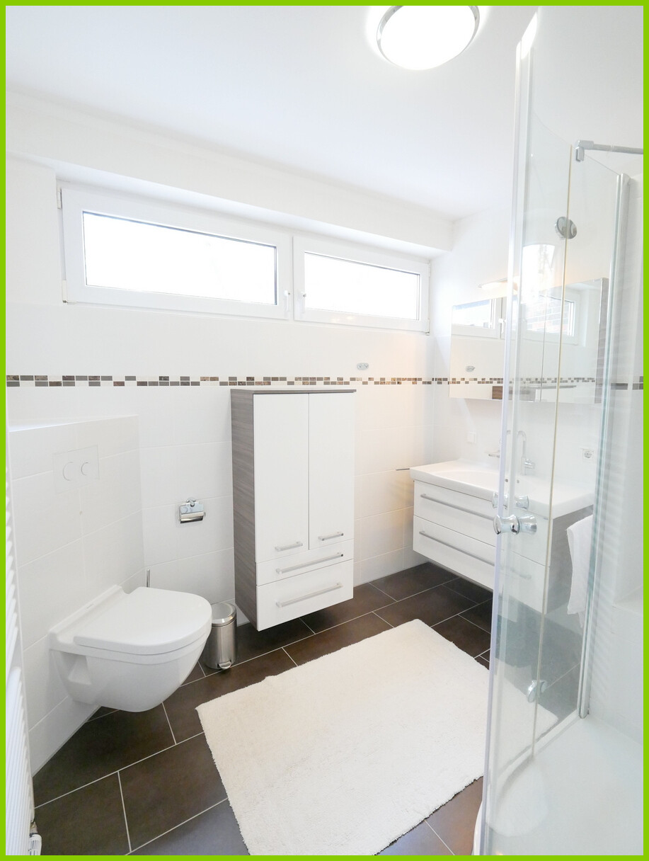 Im Obergeschoss befinden sich drei gut geschnittene Zimmer, die flexibel genutzt werden können (z.B. Schlaf-, Kinder-, Gäste- oder Arbeitszimmer ). Von den rückwärtig gelegenen Schlafzimmern haben Sie Zugang zu einem großen Balkon mit schönem Blick ins Grüne. Ein weiterer, kleinerer Balkon ist an das Hauptschlafzimmer angeschlossen. Das moderne Badezimmer ist geschmackvoll gestaltet und lädt zum Entspannen ein.