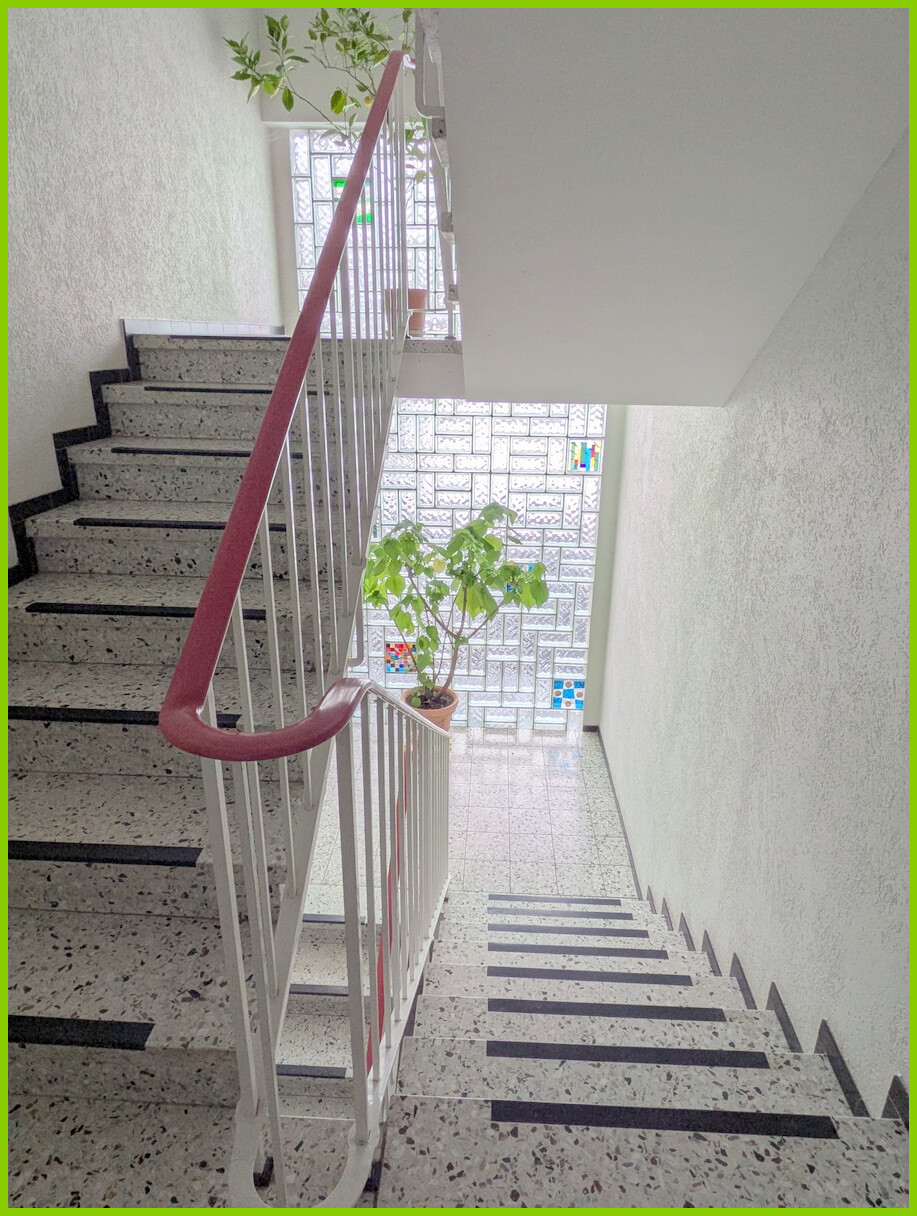 Aussenansicht Treppenhaus Flur Badezimmer Bad Schlafen Schlafen Wohnen Wohnen Kinderzimmer Küche Küche Balkon.MP Dachboden Gemeinschaft Kellerraum Garage Garage Grundriss