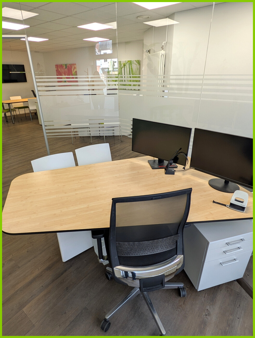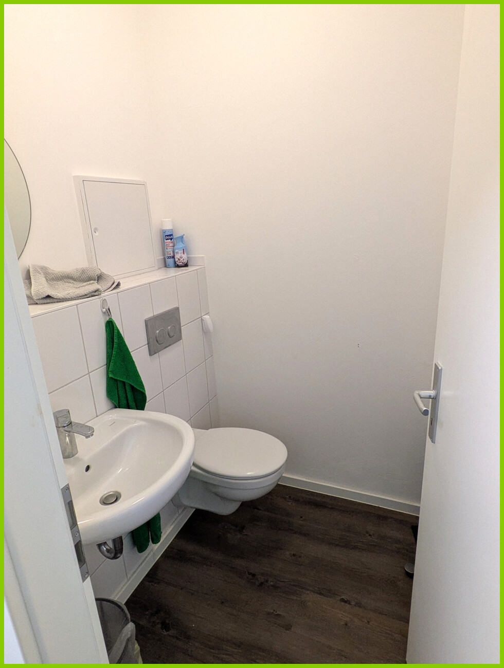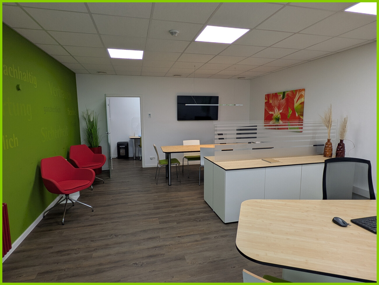 Derzeit ist die Gewerbefläche in 3 Räume mit Empfangs-/Verkaufstresen sowie einem modernen WC aufgeteilt. Die Räume können auch getrennt duch die 2 Eingangstüren erreicht werden.